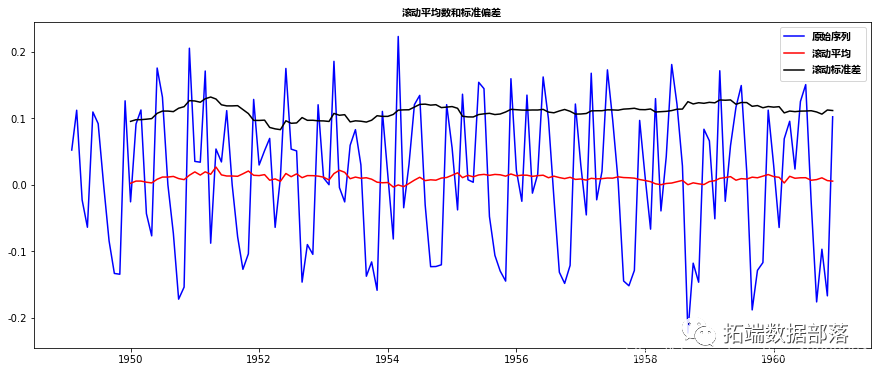 虽然标准差的变化很小,但平均值明显随时间增加,这不是一个平稳序列。而且,检验统计量远大于临界值。请注意,应该比较有符号的值,而不是绝对值。