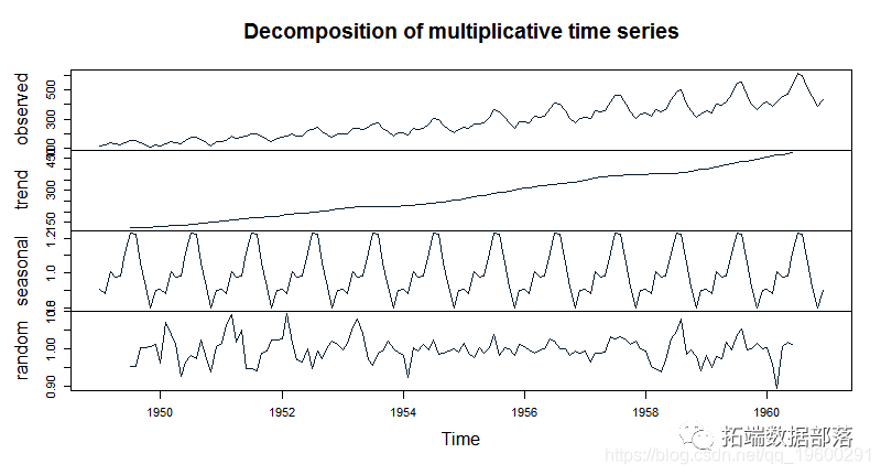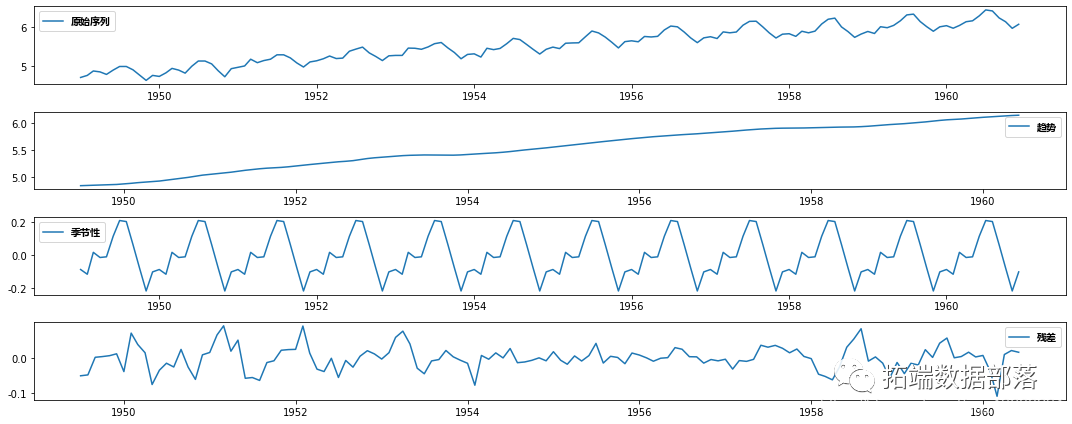 #将数据分解为趋势、季节性和随机误差分量