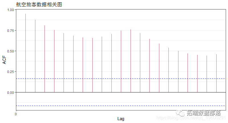 plot(acf(tsdata,plot=FALSE))+ labs(title="航空旅客数据相关图")