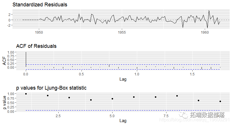 很明显,随着一些季节性变化,数据总体呈上升趋势。然而,可能并不总是能够做出这样的视觉直观推断(我们稍后会看到这样的情况)。因此,更正式地说,我们可以使用以下方法检查平稳性: