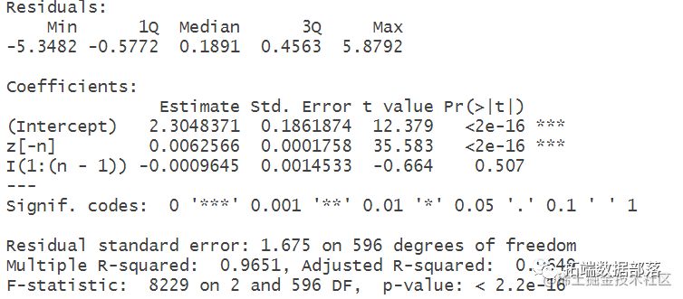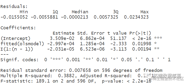 # 把x(t-1)的估计值带⼊到第1⼀个式⼦中,即y(t)=β*x(t-1)的估计值+ε(t)