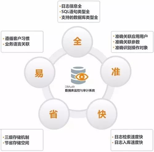 优势:DBAudit基于精确协议分析、完全SQL解析、参数化匹配和100%应用关联技术,创造了业界最为准确的数据库审计产品,为可信审计追踪提供了坚实的基础。