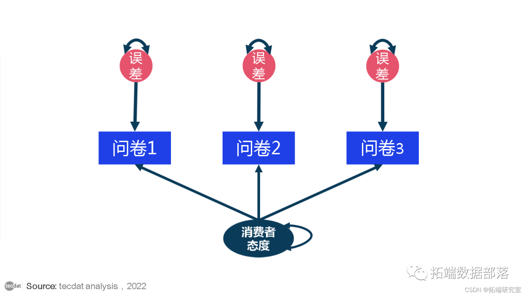 为了减少混乱,我省略了误差和残差项,它们类似于因子分析中的独特因素和回归中的残差项。