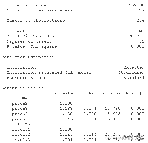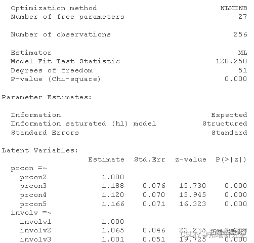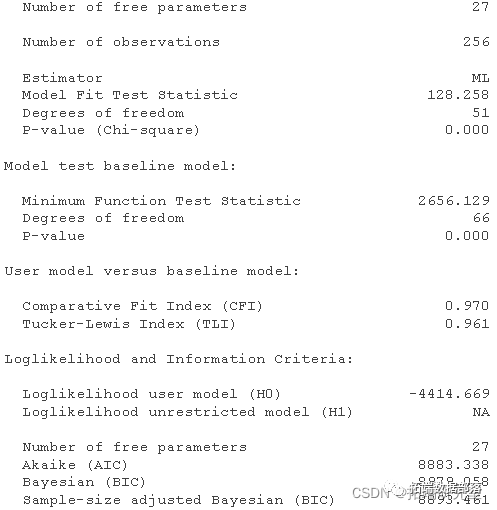 # 你可以用fit.measures = TRUE来显示更详细的结果。