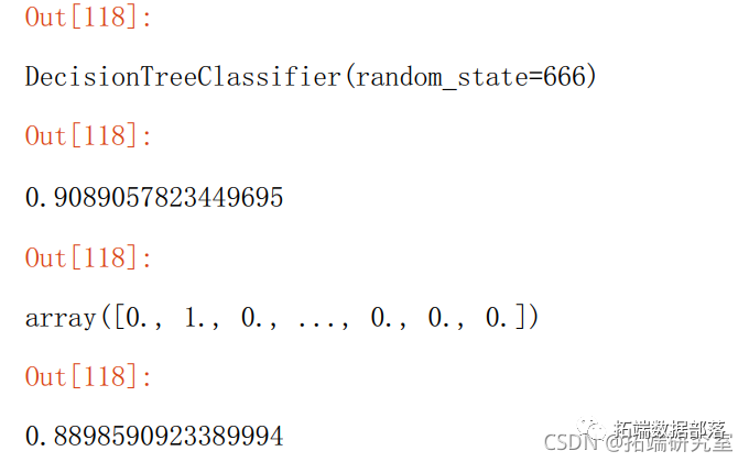 dtc.fit(X\_tran,\_raiproba(X_test)\[:,1\] # 预测1类的概率