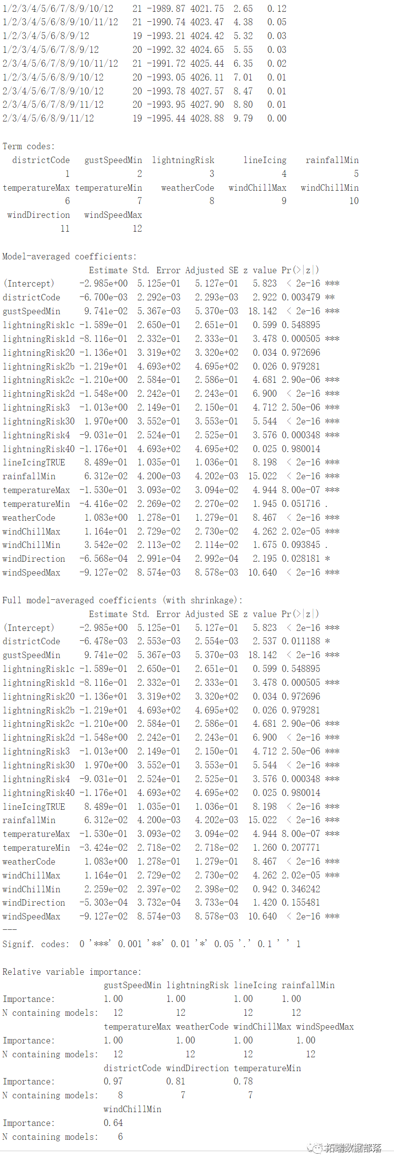 全子集回归,即基于全模型获得可能的模型子集,并根据AIC值等对子集排序以从中获取最优子集。