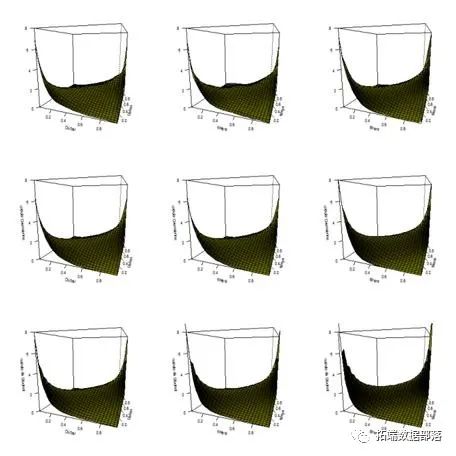 length(fite)比较两种拟合,如表 II 所示,我们发现 t-copula 拟合最好,因此我们将根据 t-copula 的参数创建一个模型。然后,我们使用该模型生成 10,000 个观察结果,模拟我们模型的可能结果。我们的模拟模型与拟合模型之间的图形比较可以在图 6 中看到 - 模拟非常接近拟合模型。