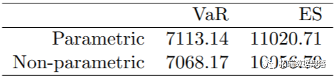 R中公式的应用实现如下。请注意,在代码中,VaR 和 ES 被四舍五入到最接近的千位。结果在表III中。