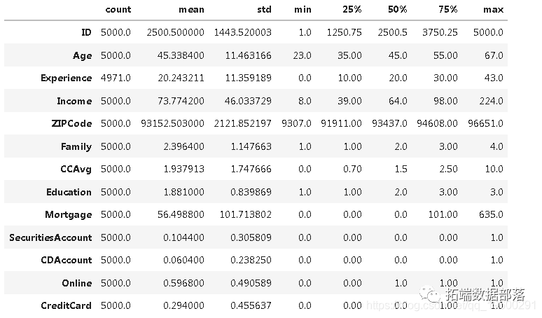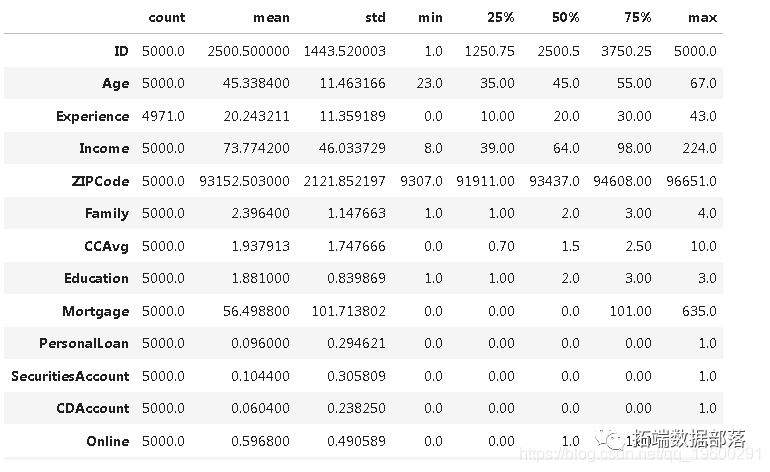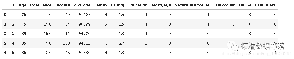 下面给出的文件包含5000个客户的数据(查看文末了解数据获取方式)。数据包括客户人口统计信息(年龄,收入等),客户与银行的关系(抵押,证券账户等)以及客户对上次个人贷款活动的因变量(个人贷款)。在这5000个客户中,只有480个(= 9.6%)接受了先前活动中提供给他们的个人贷款
