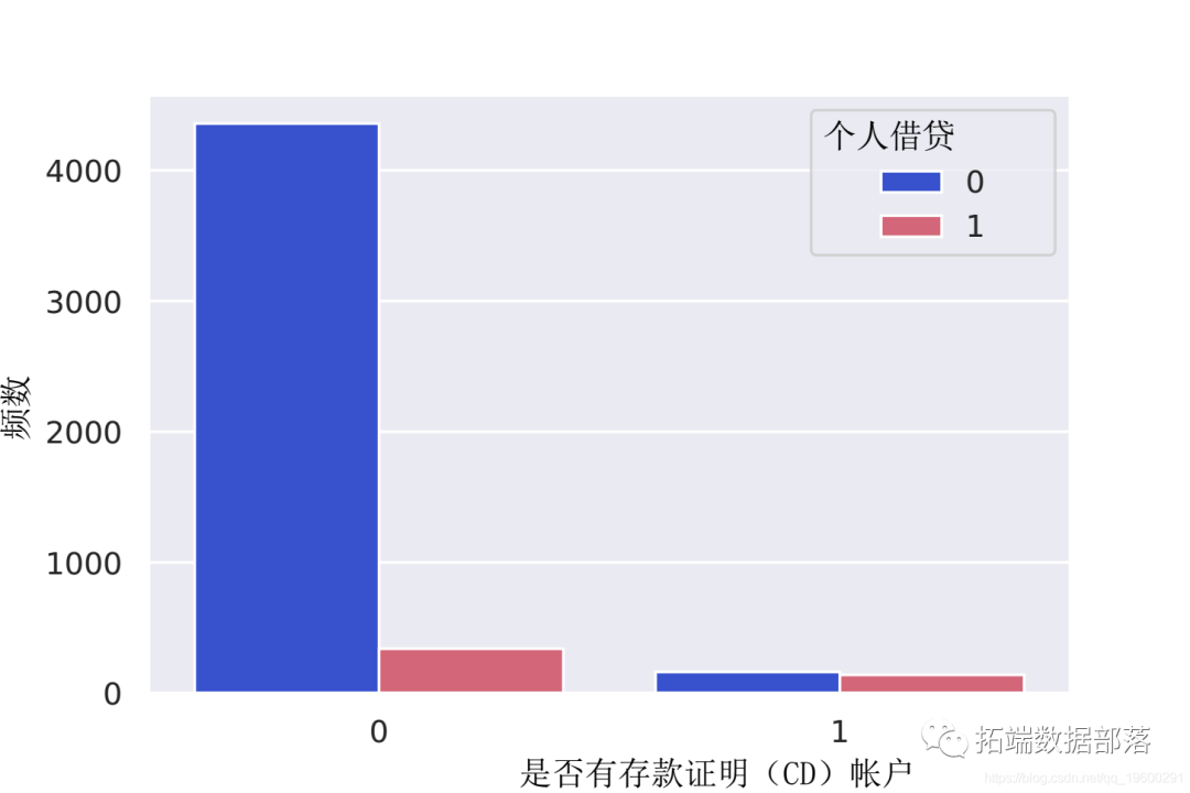 观察:没有CD帐户的客户,也没有贷款。这似乎占多数。但是几乎所有拥有CD帐户的客户也都有贷款