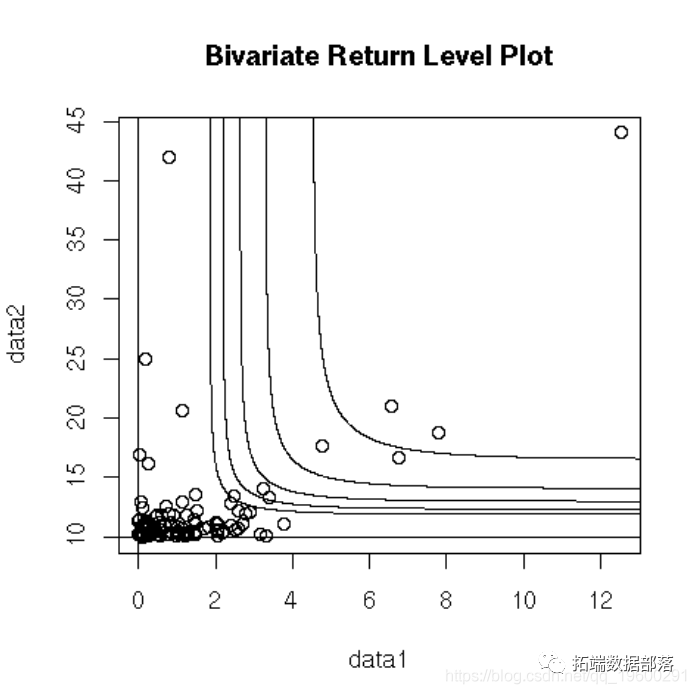 为了从 Block Maxima 数据中创建风险价值 (VaR) 估计,将 10 股指数 GEV 数据转换为时间序列。VaR 估计是根据 GEV 时间序列数据进行的。未来值的预测(未来 100 天和 500 天)是从 VaR 数据推断出来的。在结果图中,蓝色圆圈表示未来 100 天的值,红色圆圈表示 500 天的收益率值。