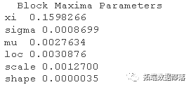 希尔估计(用于尾部指数的参数估计)验证 10 只股票的 GEV 数据是极值分布。