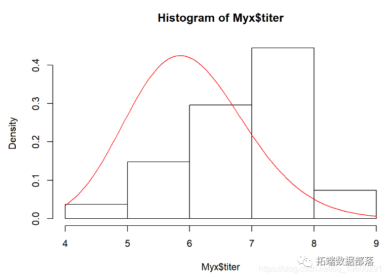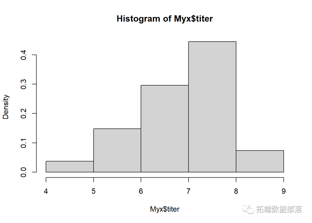 hist(Myx$titer,freq=FALSE)