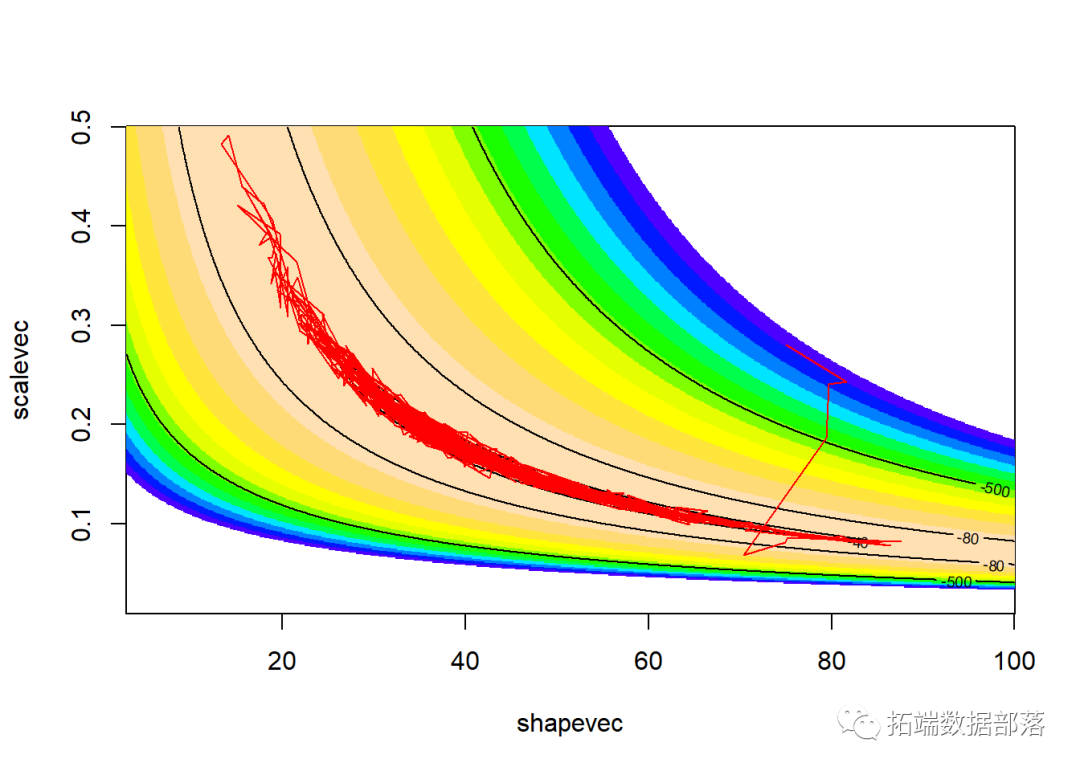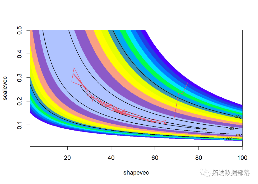 contour(x=shapevec,y=scalevec,z=surface2D,levels=c(-30,-40,-80,-500),add=T)