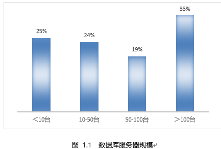 在参与问卷的144家单位中,半数以上的企业部署的数据库服务器超过50台,三成企业达到百台规模。