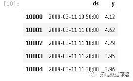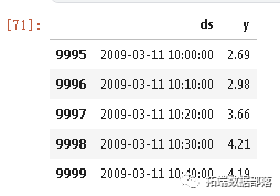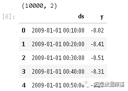 Prophet模型需要得到一个有两列的DataFrame:一列名为ds,包含时间戳,一列名为y,包含要评估的时间序列。我们只看温度数据。