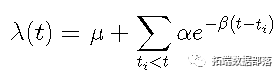 指数函数定义了过程的记忆,即过去的事件如何影响当前的事件。求和将此函数应用于从事件 titi 到当前事件 t 的历史。λ(t)表示时间 t 的瞬时强度。