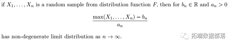 基于EVT,对于要作为极端数据考虑和分析的数据,数据必须具有其样本最大值的极限分布。从统计上讲