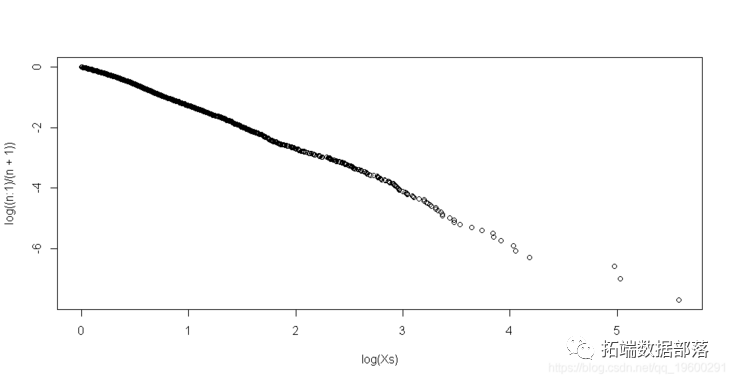 由于自然估计量是阶次统计量,因此直线的斜率与尾部指数相反