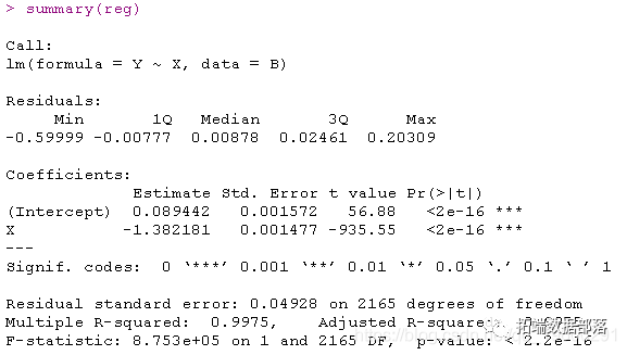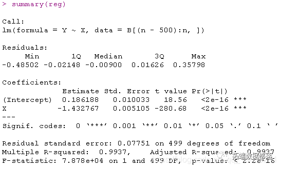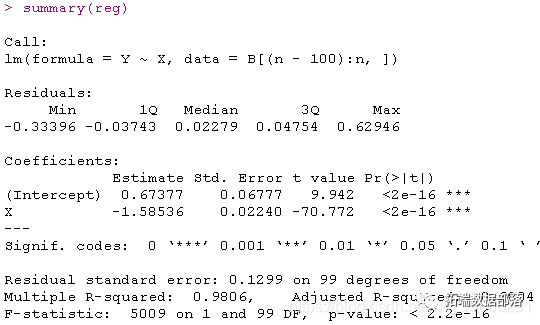 lm(formula = Y ~ X, data = B[(n - 100):n, ])