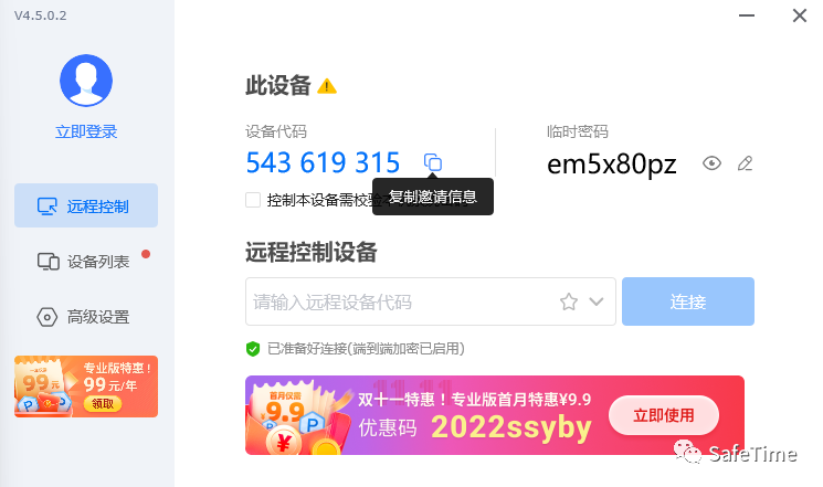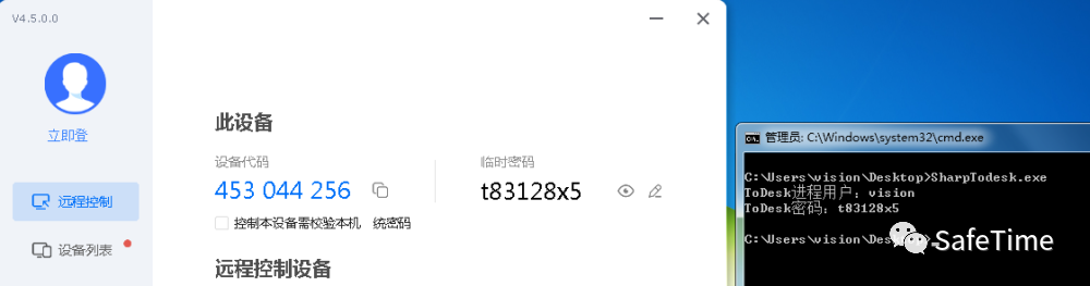 换一个环境和版本,在win7环境下,ToDesk版本为v4.5.0.0进行测试
