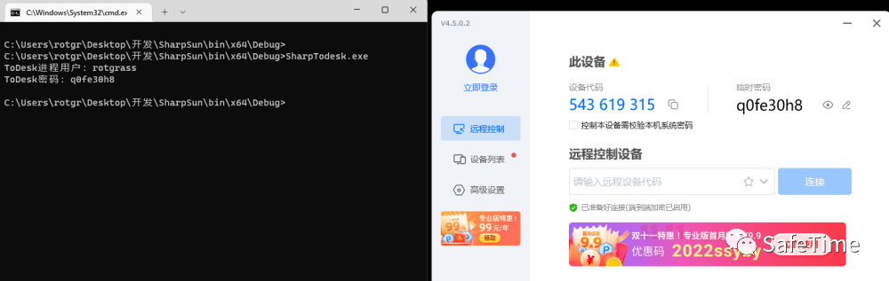 操作系统版本是win11,ToDesk版本是当前最新的v4.5.0.2,抓取密码测试