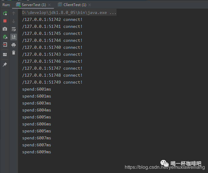 System.out.println(clientSocket.getRemoteSocketAddress()+" connect!");