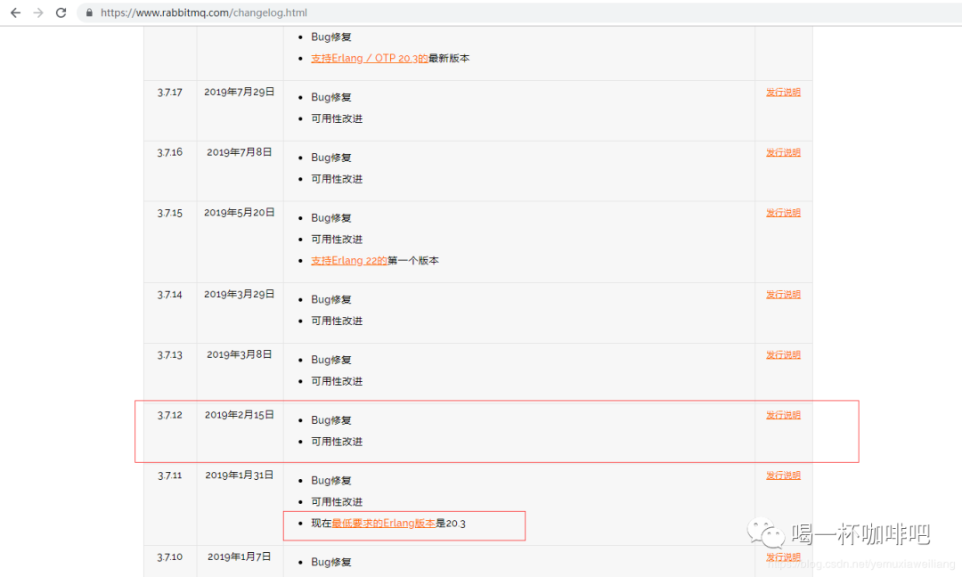注意版本一定要对应,否则安装注定失败,给一个官网的说明。笔者安装的Erlang版本是otp_win64_21.0.1。RabbitMQ Server的版本是rabbitmq-server-3.7.12