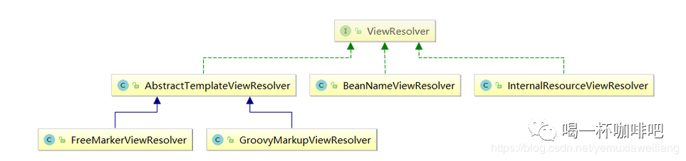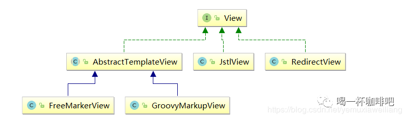 在下一步就是基于ViewResolver.resolveViewName() 获取对应View来解析生成Html并返回 。对应VIEW结构如下: