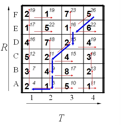 这限制 上面的点必须是随着时间单调进行的。综合连续性和单调性约束,每一个格点的路径就只有三个方向。如: 如果路径已经通过了格点 ,那么下一个通过的格 点只可能是下列三种情况之一: