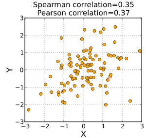 斯皮尔曼相关也可称为 “级别相关”;也就是说, 被观测数据的“等级” 被替换成 “级别”。在连续的分布中, 被观测数据的级别,通常总是小于等级的一半。然而,在这个案例中,级别和等级相关系数是一致的。更一般的, 被观测数据的“级别” 与估计的总体样本的比值小于给定的值,即被观测值的一半。也就是说,它是相应的等级系数的一种可能的解决方案。虽然不常用, “级别相关”还是仍然有被使用。