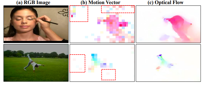 前者是指压缩视频中记录的动态信息可能是不准确的;随着压缩视频中分辨率的降低,运动向量(motion vector)被引入噪声的影响;