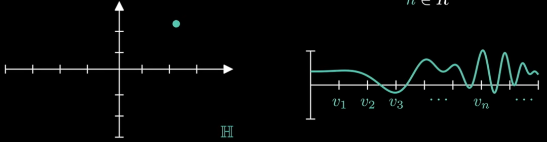 把无穷个坐标轴 排列起来看作横轴,把无穷维空间的一个点向无穷个坐标轴投影得到的取值可以看作纵轴。那么,无穷维空间中的一个点就可以与一个二维平面内的一条函数曲线 一一对应。