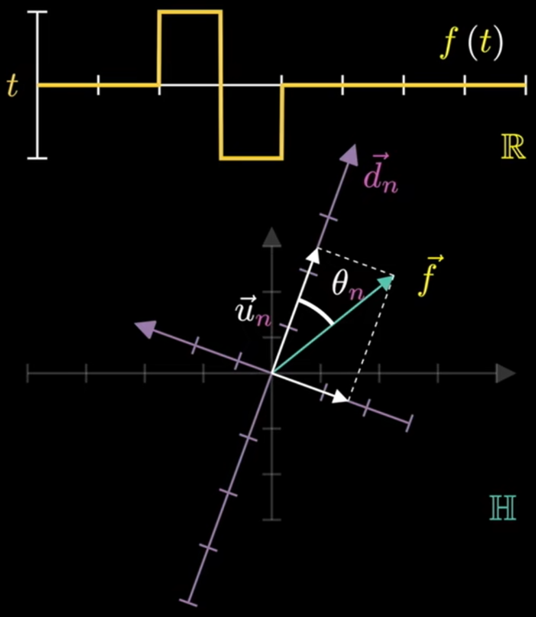 由此可见,傅里叶变换其实就是在希尔伯特空间做的一次特殊的坐标系变换,这组坐标系(基)选择的是 ,其特殊之处在于这组基向量是正交的。