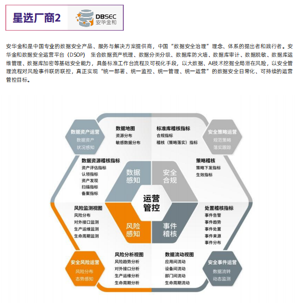 此次的入选,安华金和保持了自身的赛道优势,并充分体现在数据安全领域丰富的产品体系、过硬的技术实力与专业的安全服务能力。