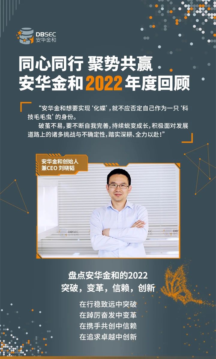在新形势、新机遇下,安华金和将继续立足数据安全领域,发挥技术优势,担负企业责任,紧跟时代发展脉搏,力争为广大行业客户提供更多更好的数据安全产品和解决方案,全力推进我国数据安全产业高质量发展!