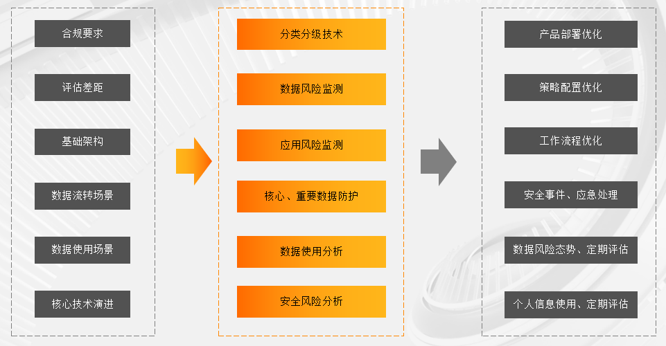 包含监管和主管机构要求、数据类型和风险场景、同业和其它行业经验以及企业级数据安全标准等。