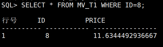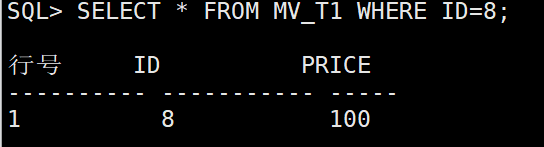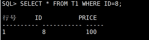 SQL> UPDATE T1 SET PRICE=100 WHERE ID=8;SQL> COMMIT;