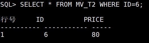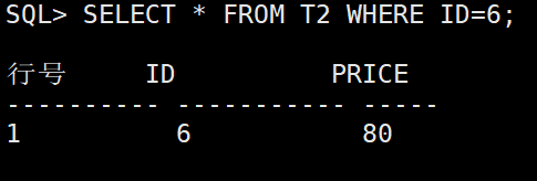 SQL> UPDATE T2 SET PRICE=80 WHERE ID=6;SQL> COMMIT;