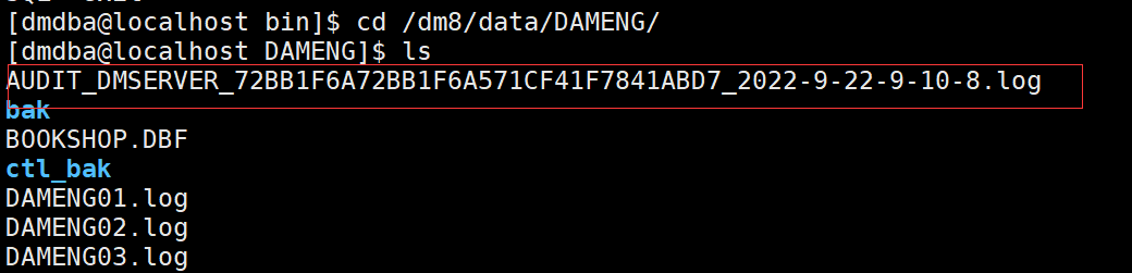 [dmdba@localhost bin]$ cd dm8/data/DAMENG/[dmdba@localhost DAMENG]$ ls