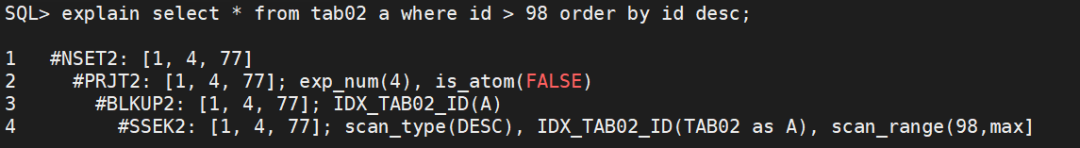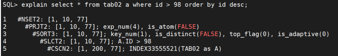 查看执行计划,可以看到优化器已经选择了去除SORT。