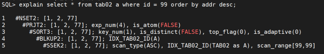 如果使用如下sql查询,查看执行计划,可以看到仍然有SORT:
