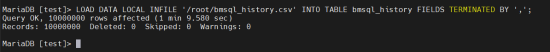 1. LOAD DATA2. INFILE '/home/dmdba/bmsql_history.csv'3. INTO TABLE bmsql_history4. FIELDS ','