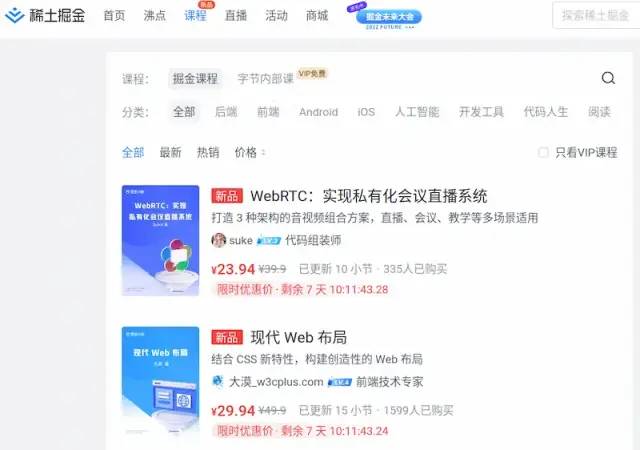 双十二马上就要到了,“掘金小册”正在办年终促销。[16]大家可以去看看,有没有自己需要的教程,也参考一下别人的教程怎么写。