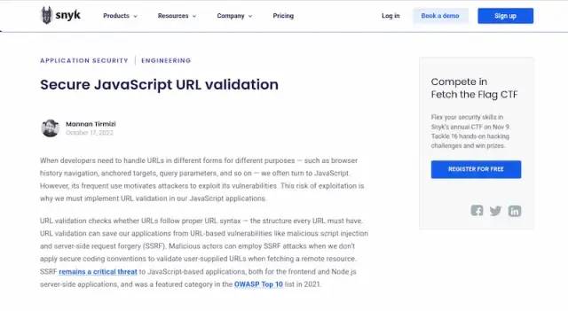 JavaScript 如何验证 URL: https://snyk.io/blog/secure-javascript-url-validation/[29]
