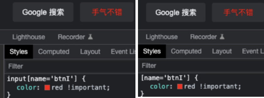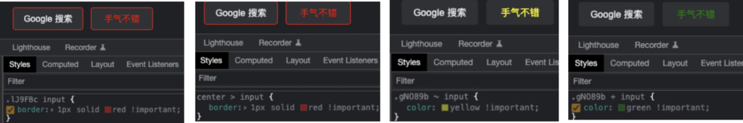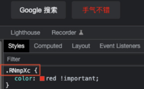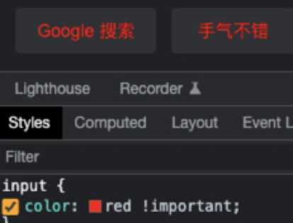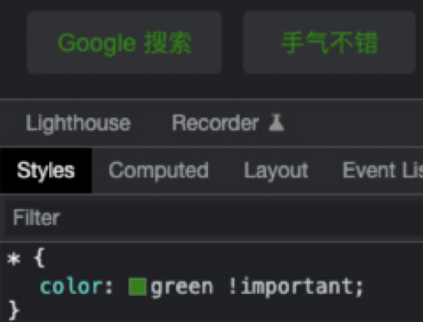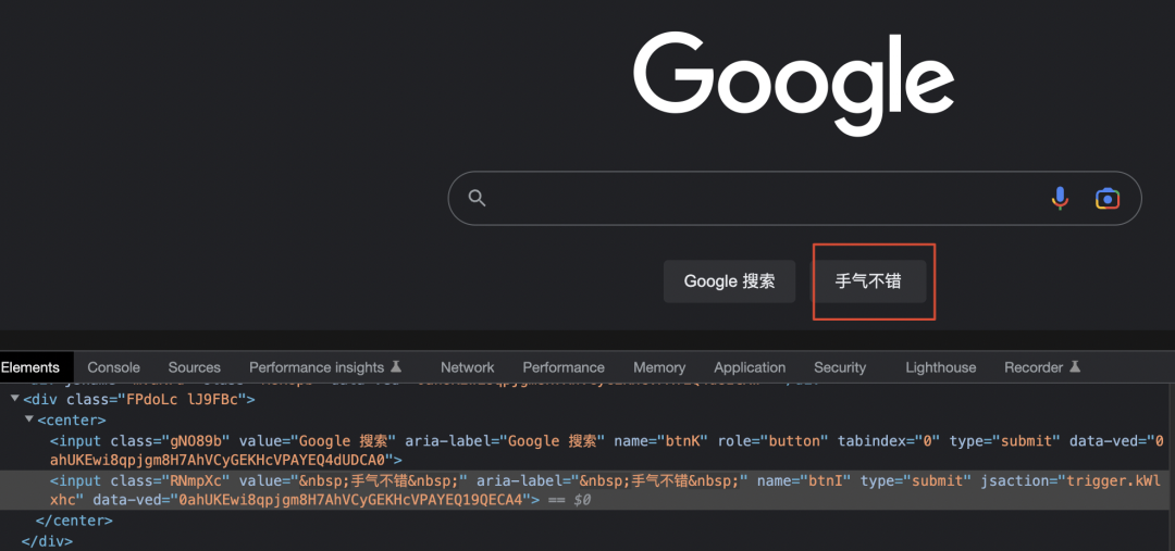 国际惯例,先抛出一个问题,下图是google首页,要想改变“手气不错”这个按钮样式,有多少种方法找到她改变她?