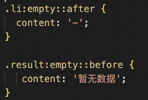 1、:empty 空元素伪类,不含内容(空包括格)不含子元素的元素,需要注意的是会把单标签也给囊括进去,使用场景如下: