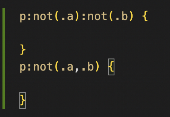 2、:not 否定伪类,支持链式写法也支持复杂参数,主要用来更方便的元素匹配,同时配合其他选择器也能起到意想不到的效果,比如