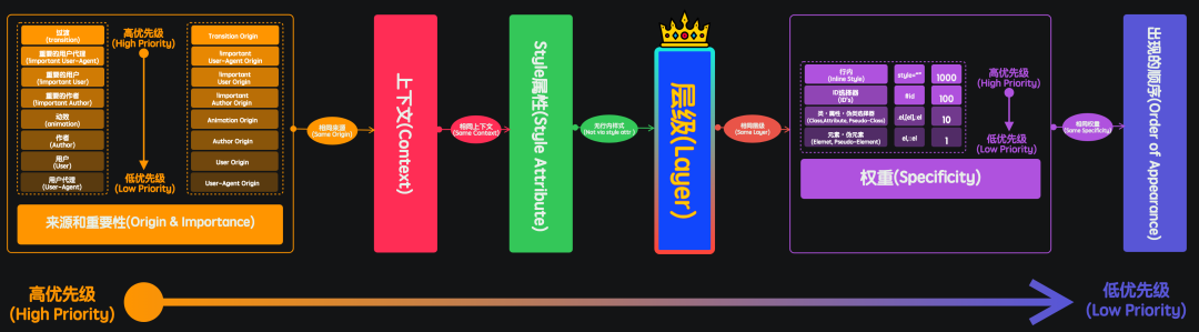 层级(@layer)之间优先级按照后来居上的原则