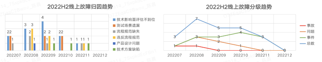 线上故障分析结果:2022Q4线上故障的流程规范缺失&违反流程规范归因数量较2022Q3降低78%(Q3/Q4:9/2),同时,2022H2线上故障数量整体呈下降趋势